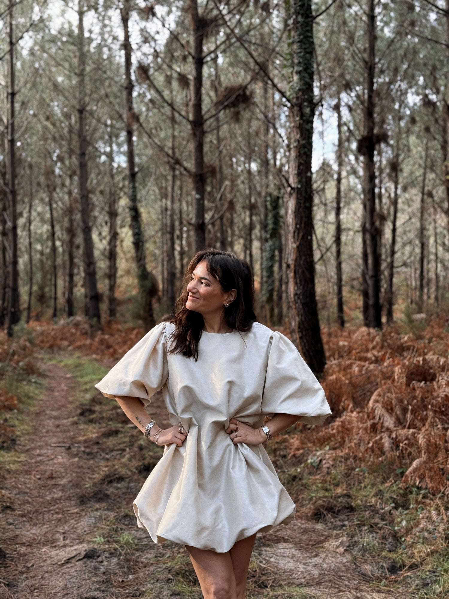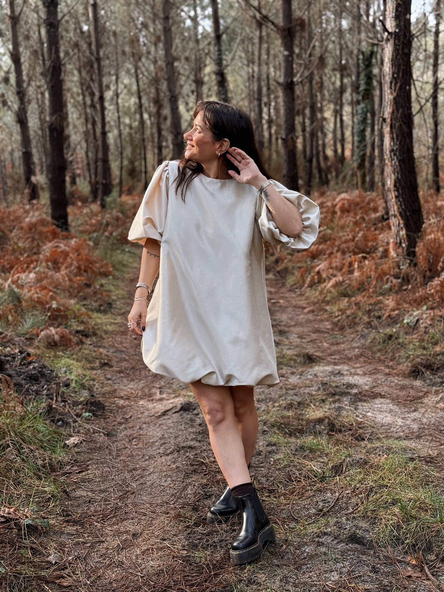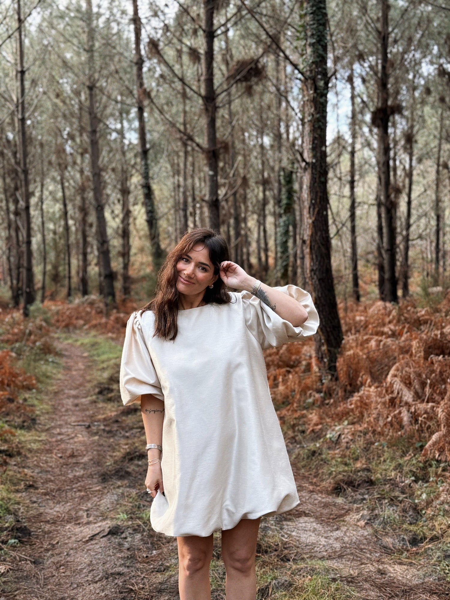 - Manches courtes resserrées par des élastiques. Bouffantes
