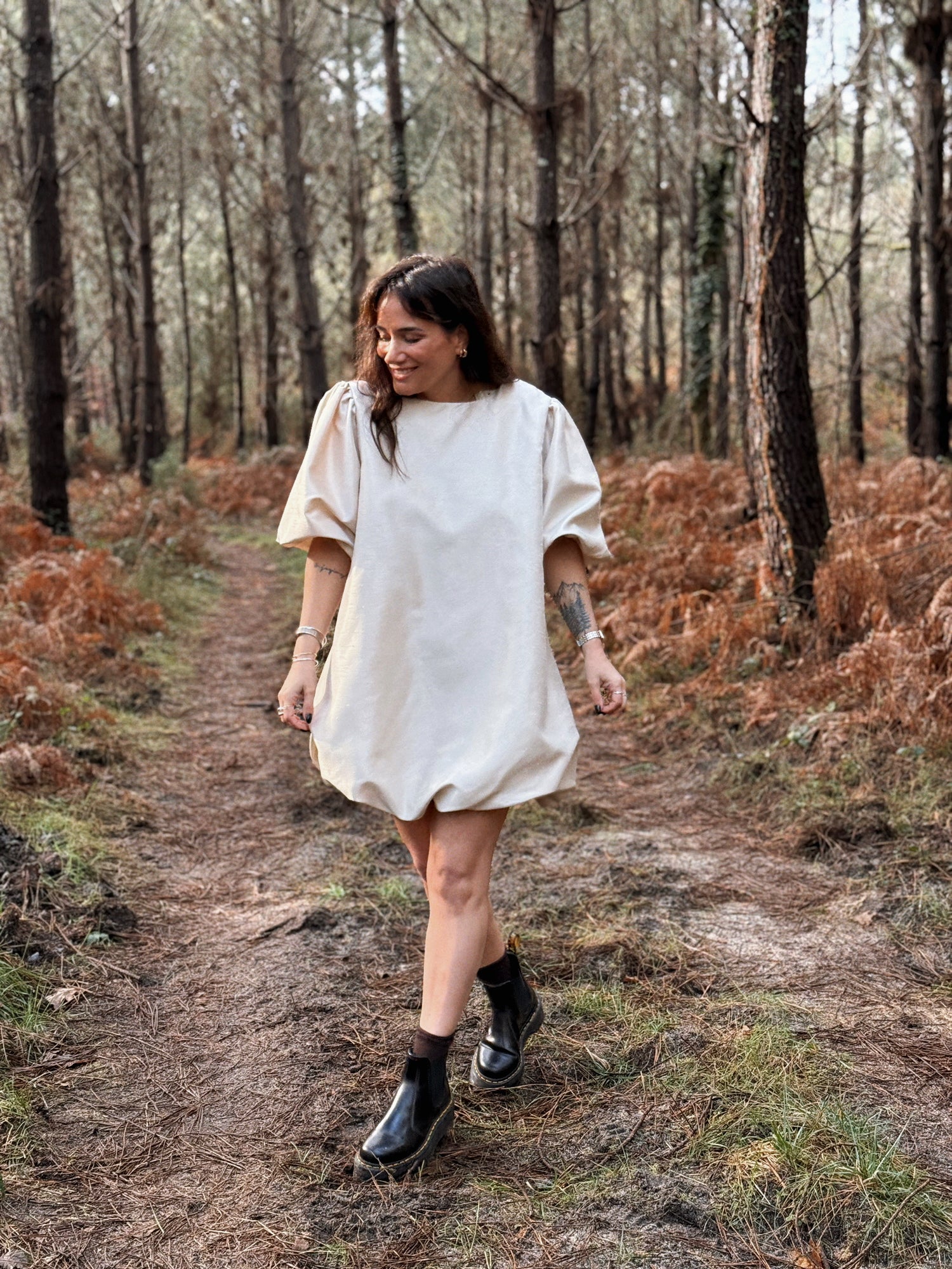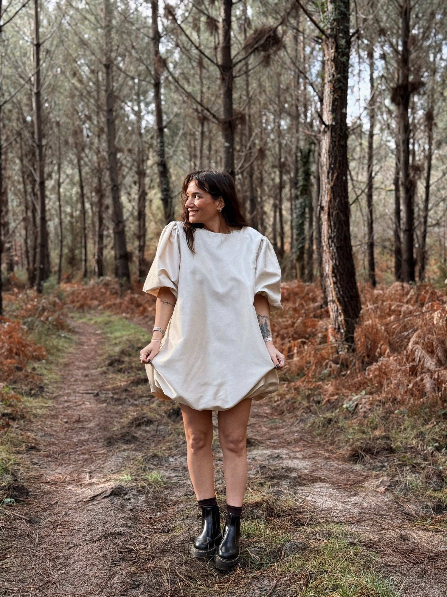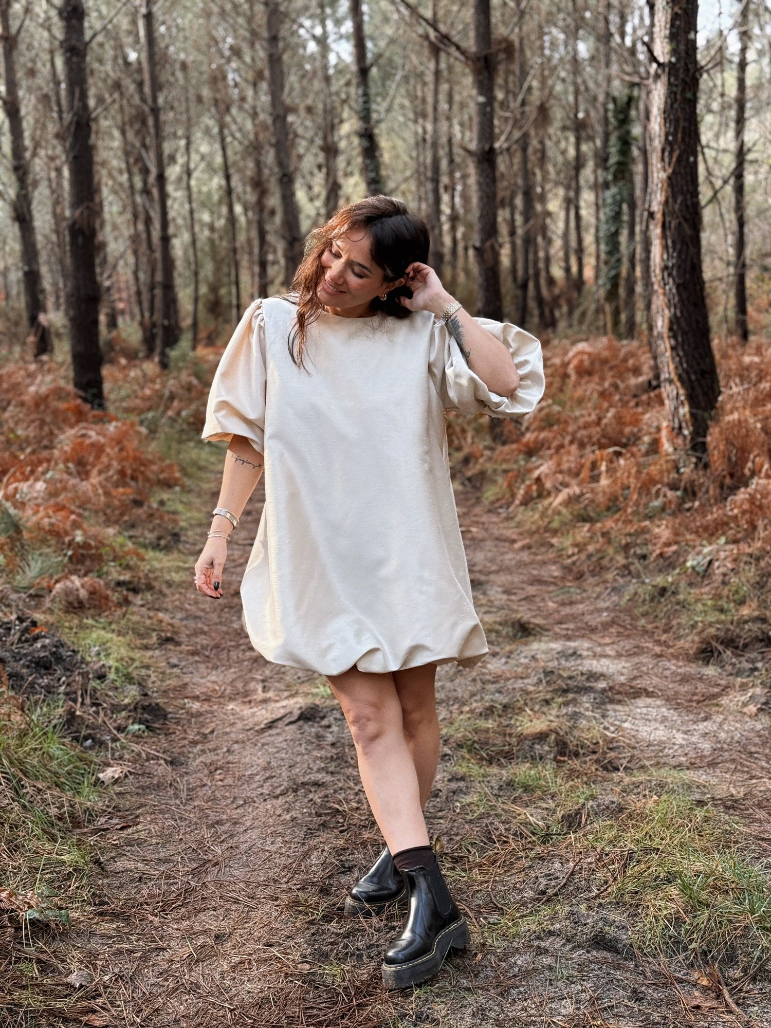 - Manches courtes resserrées par des élastiques. Bouffantes