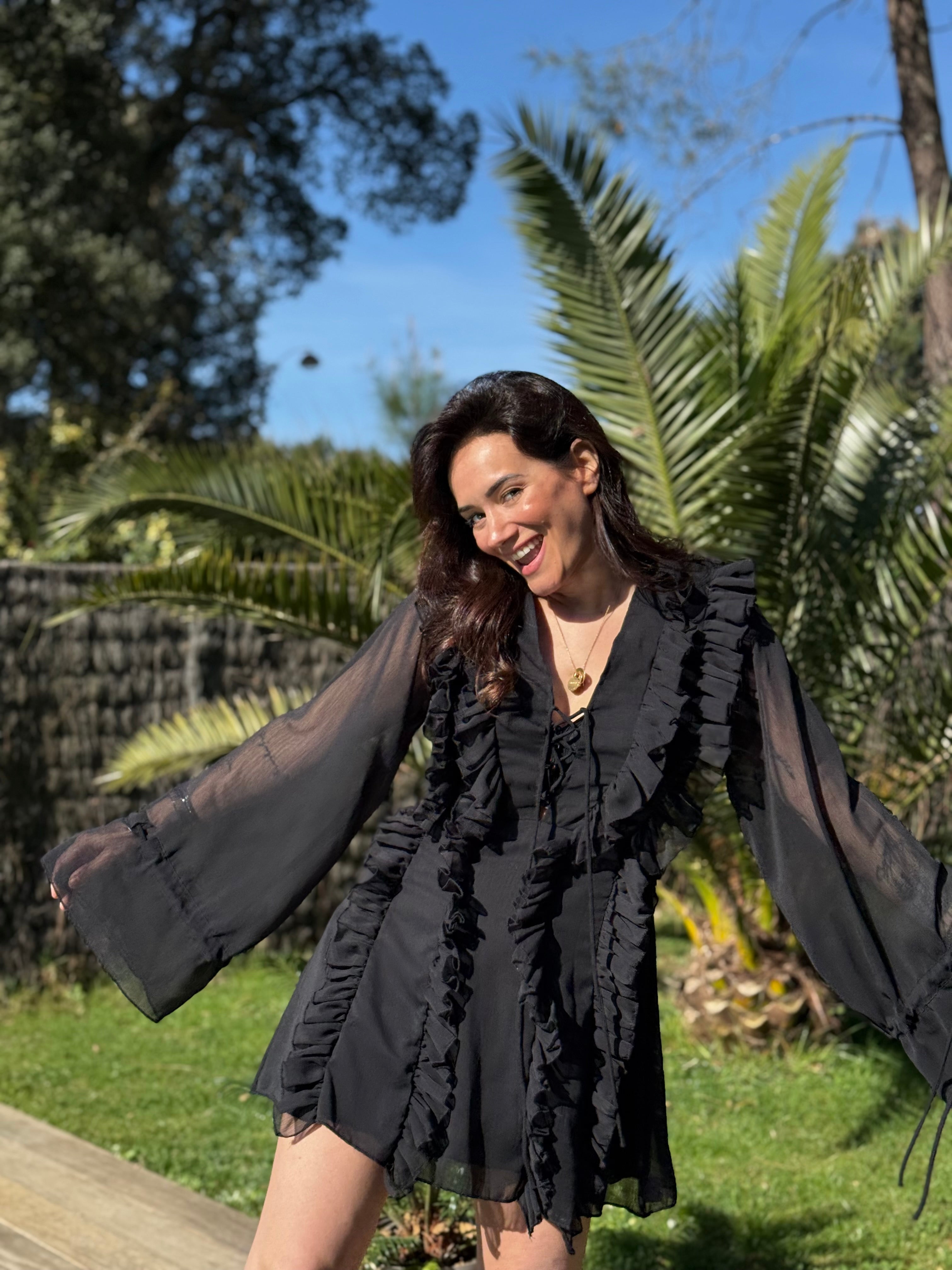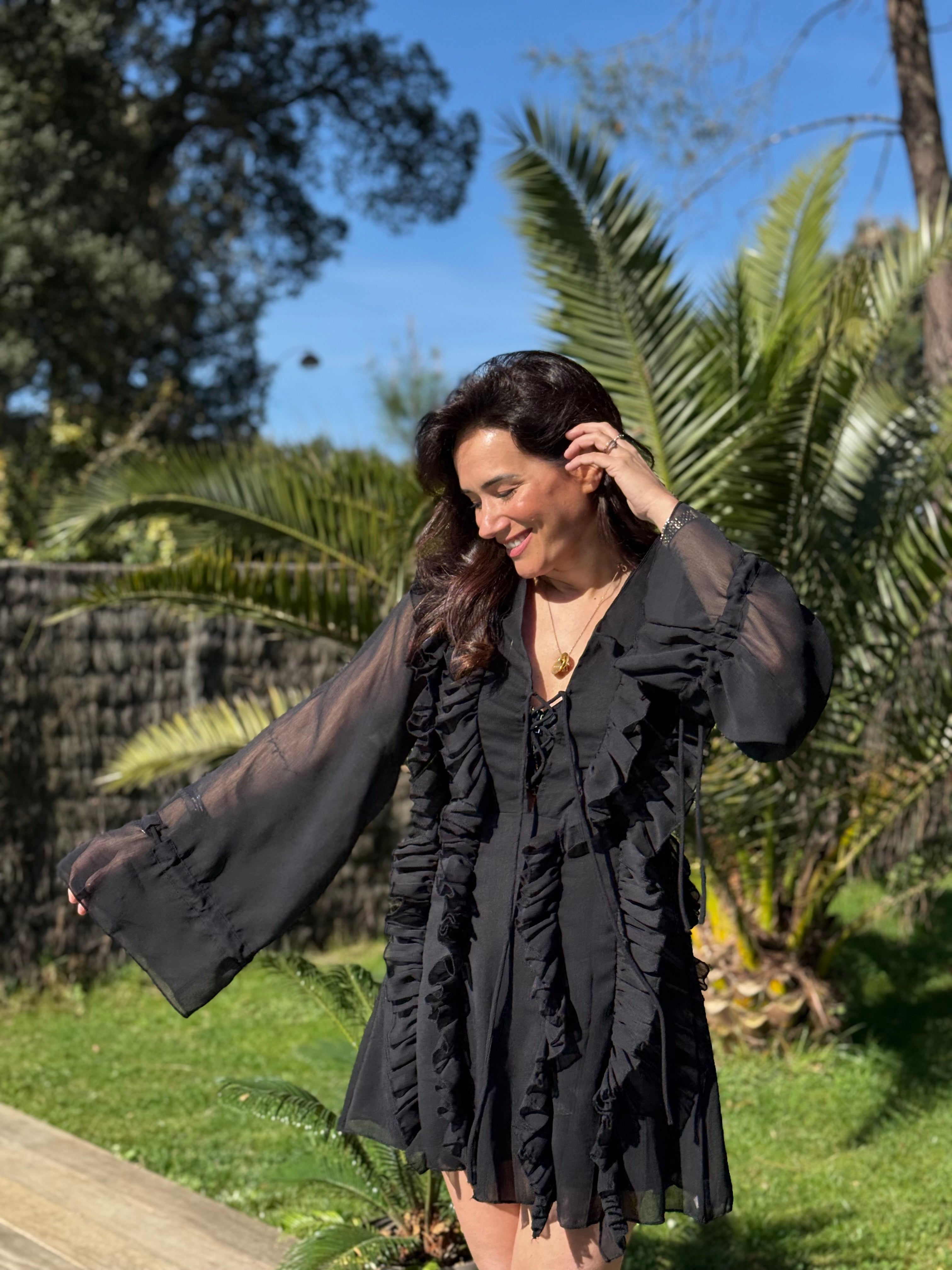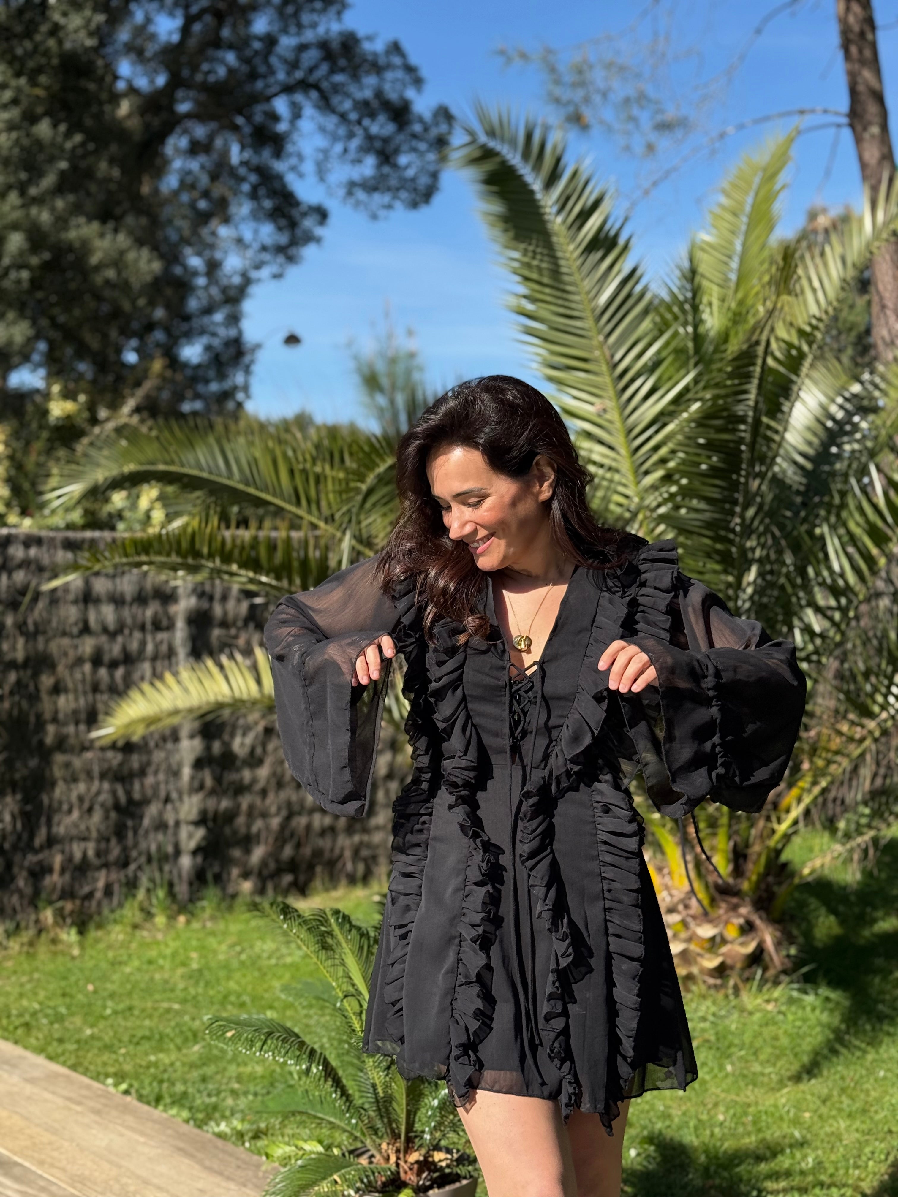 - Froufrous verticaux sur l'ensemble de la robe