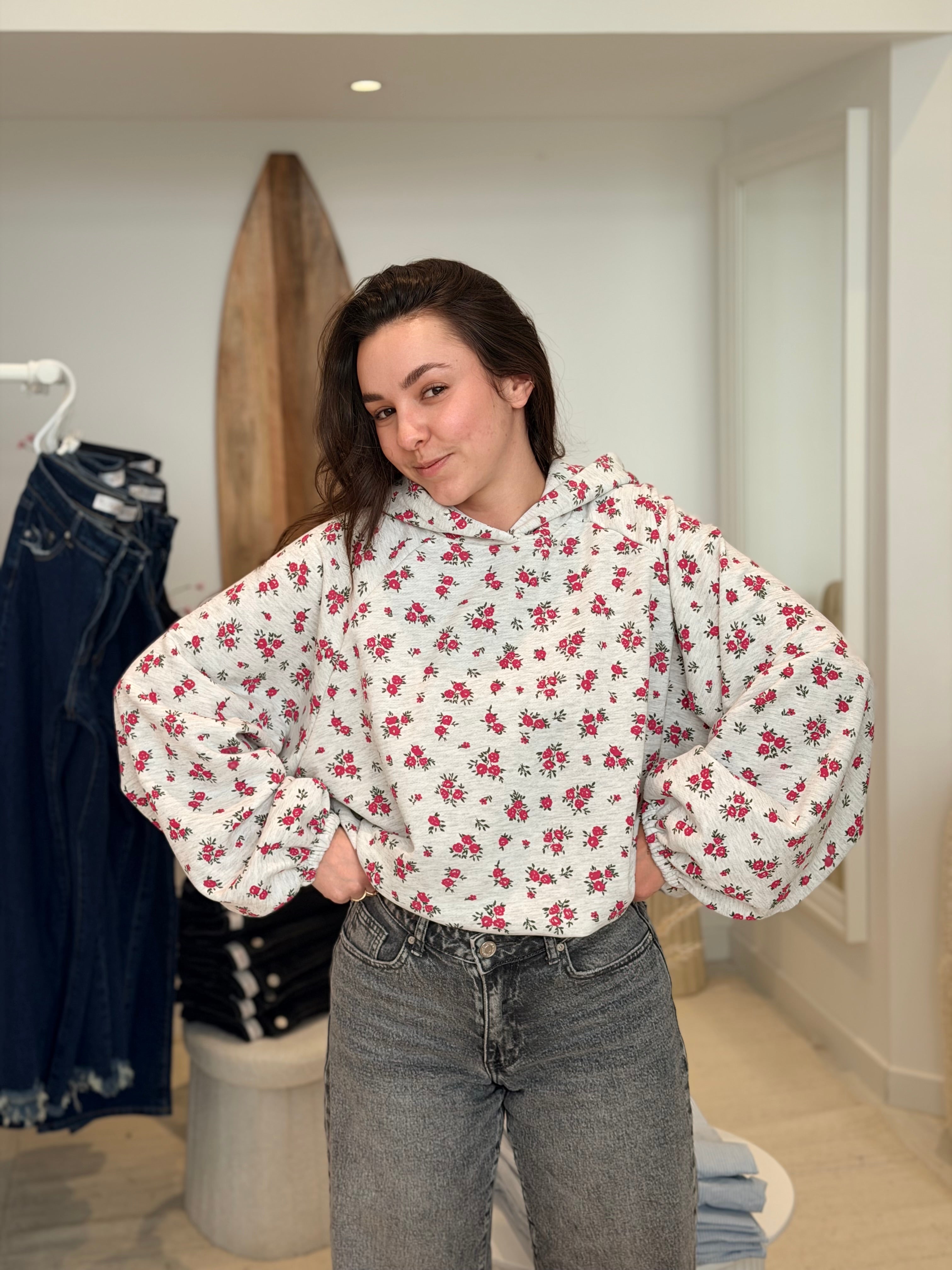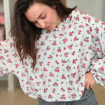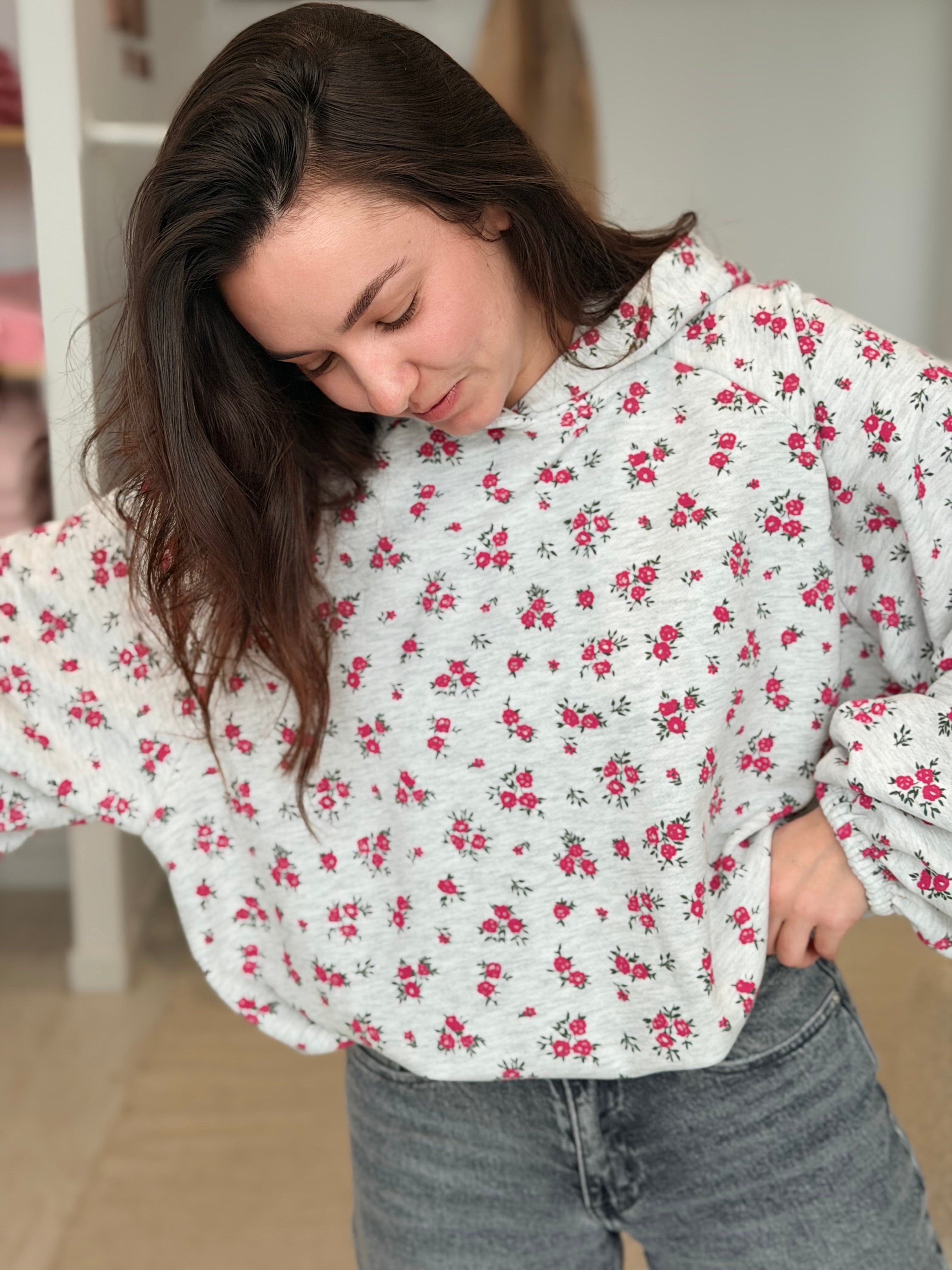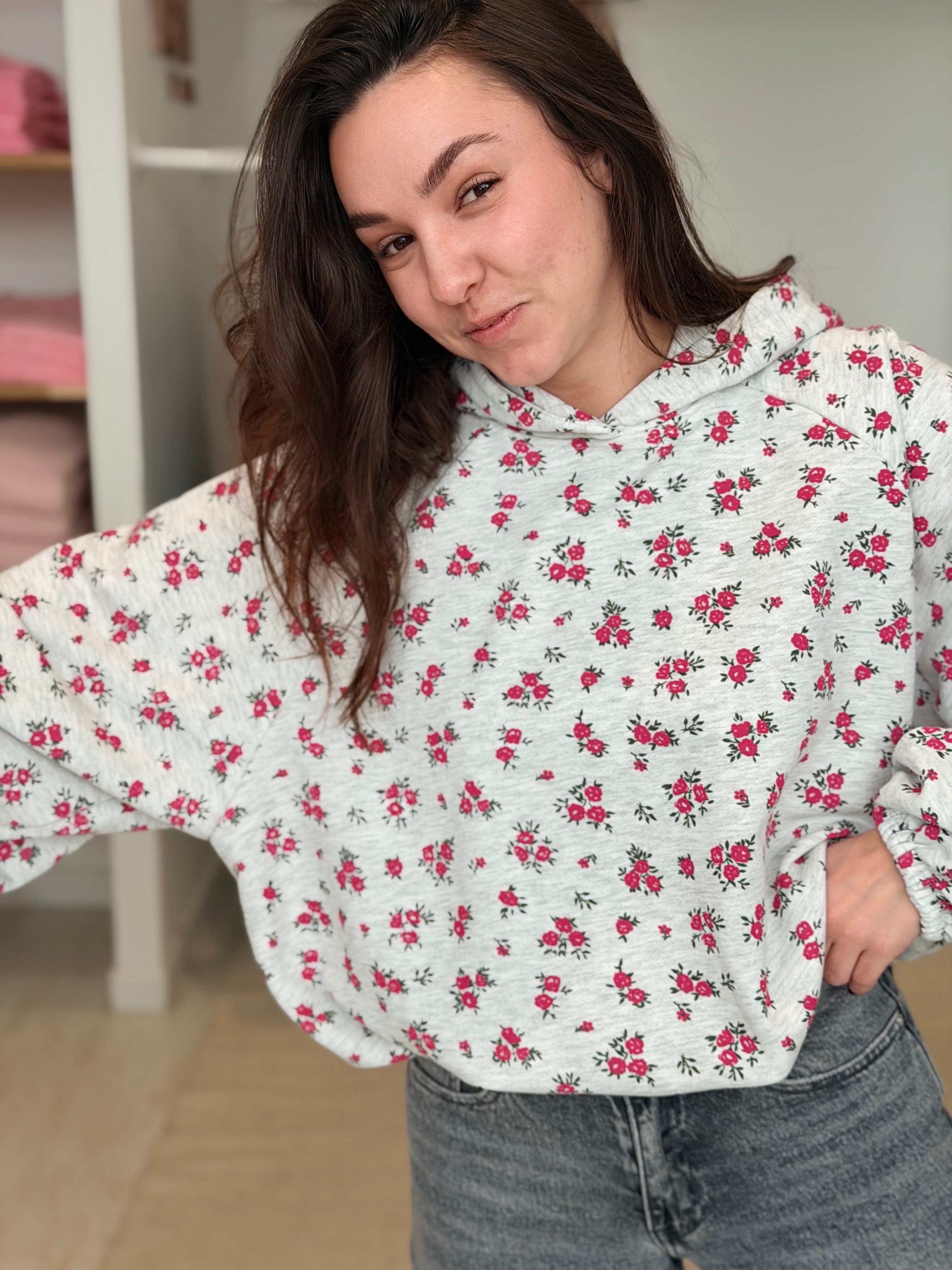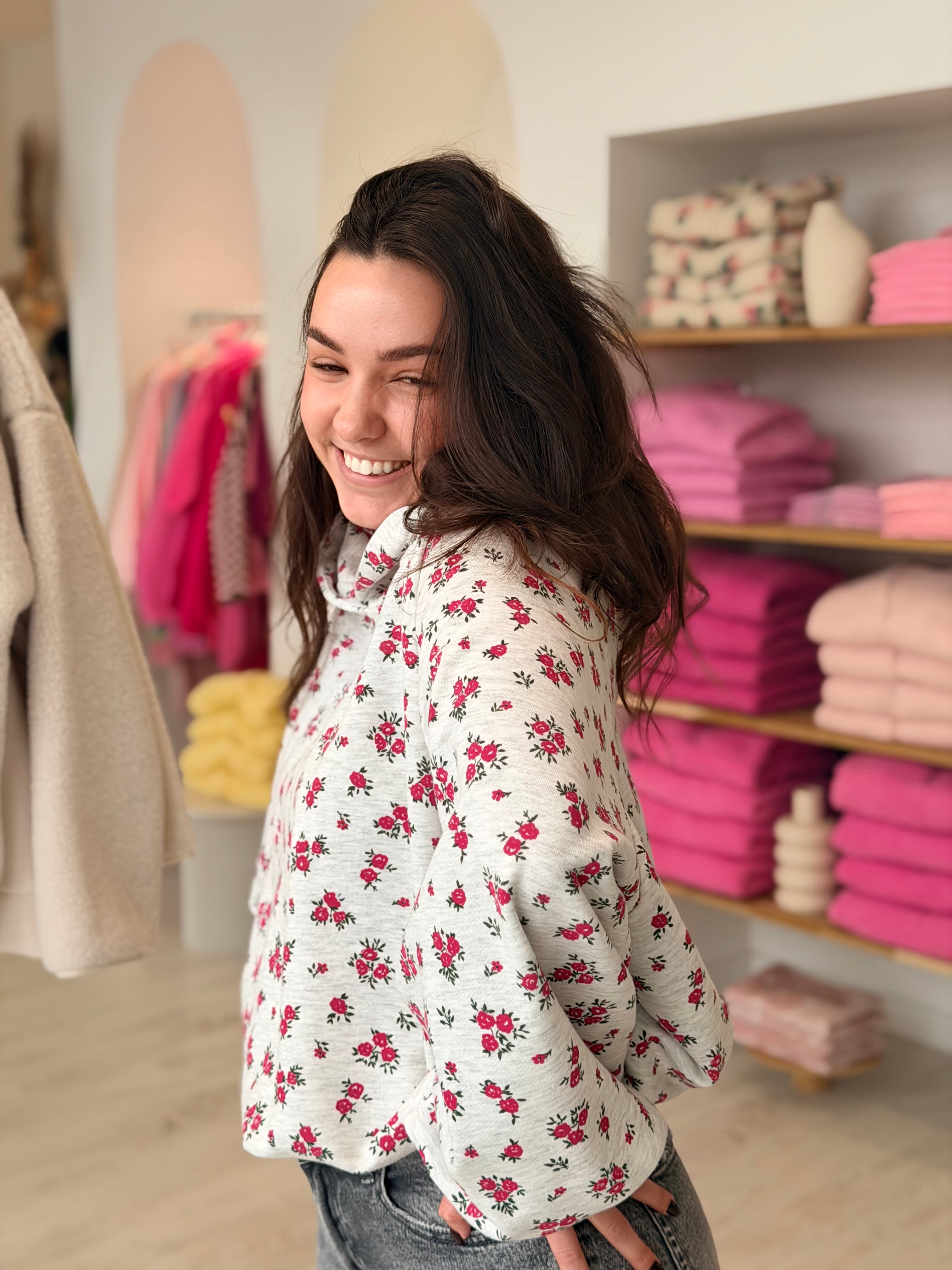 • Imprimés roses sur l'ensemble du pull