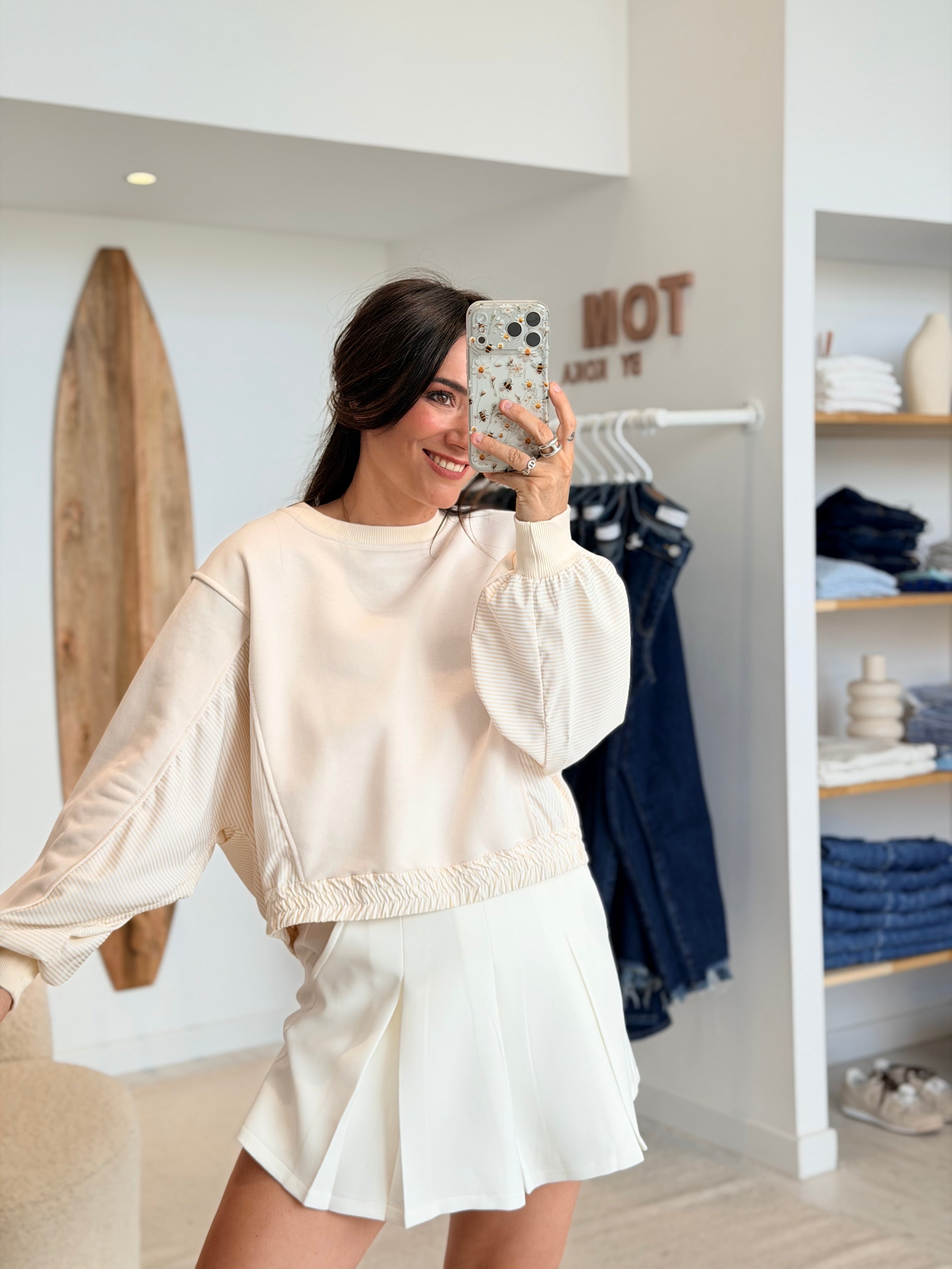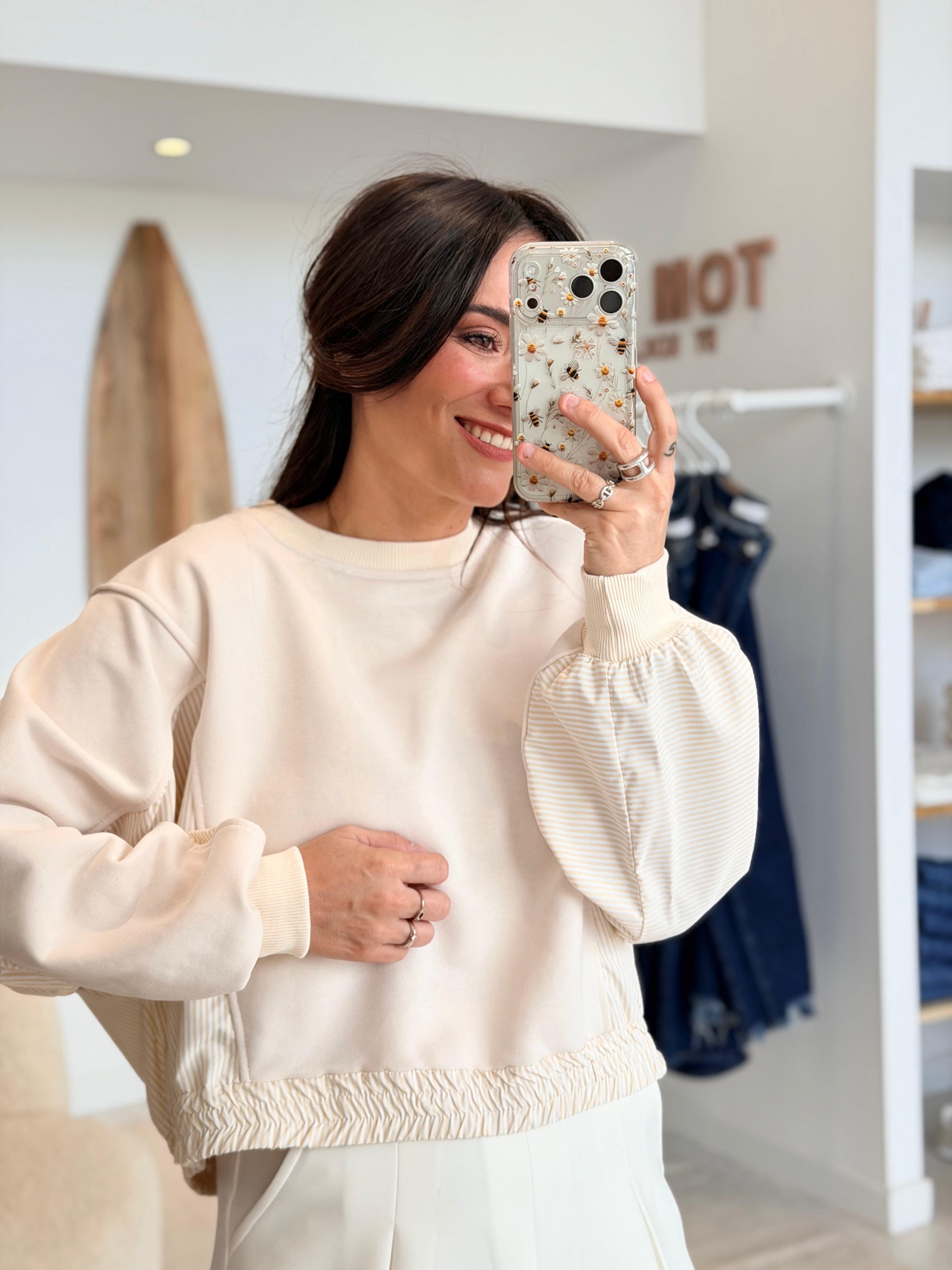 - Manches effet chauves souris, rayures verticales