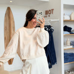 - Manches longues et larges resserrées aux poignets