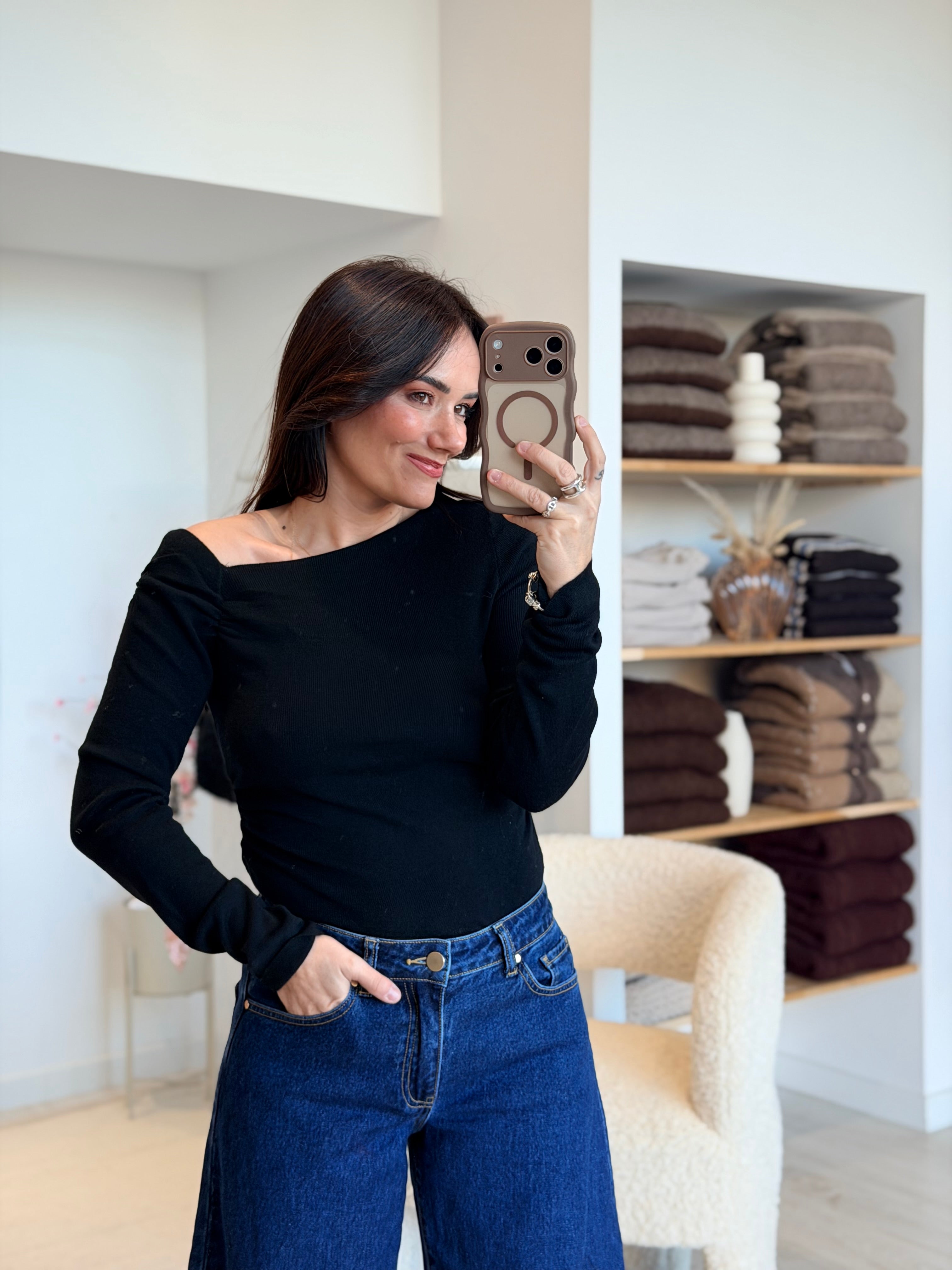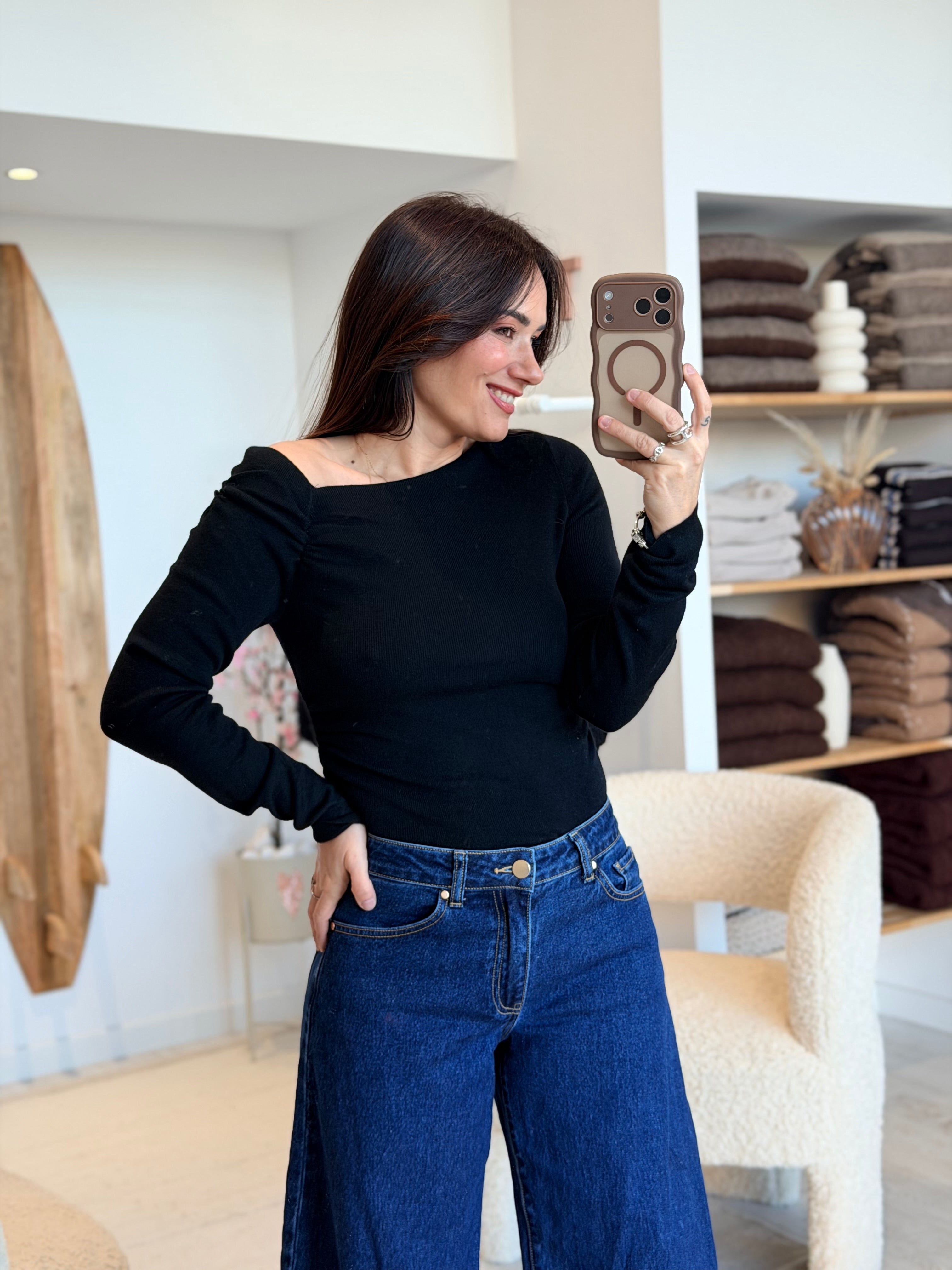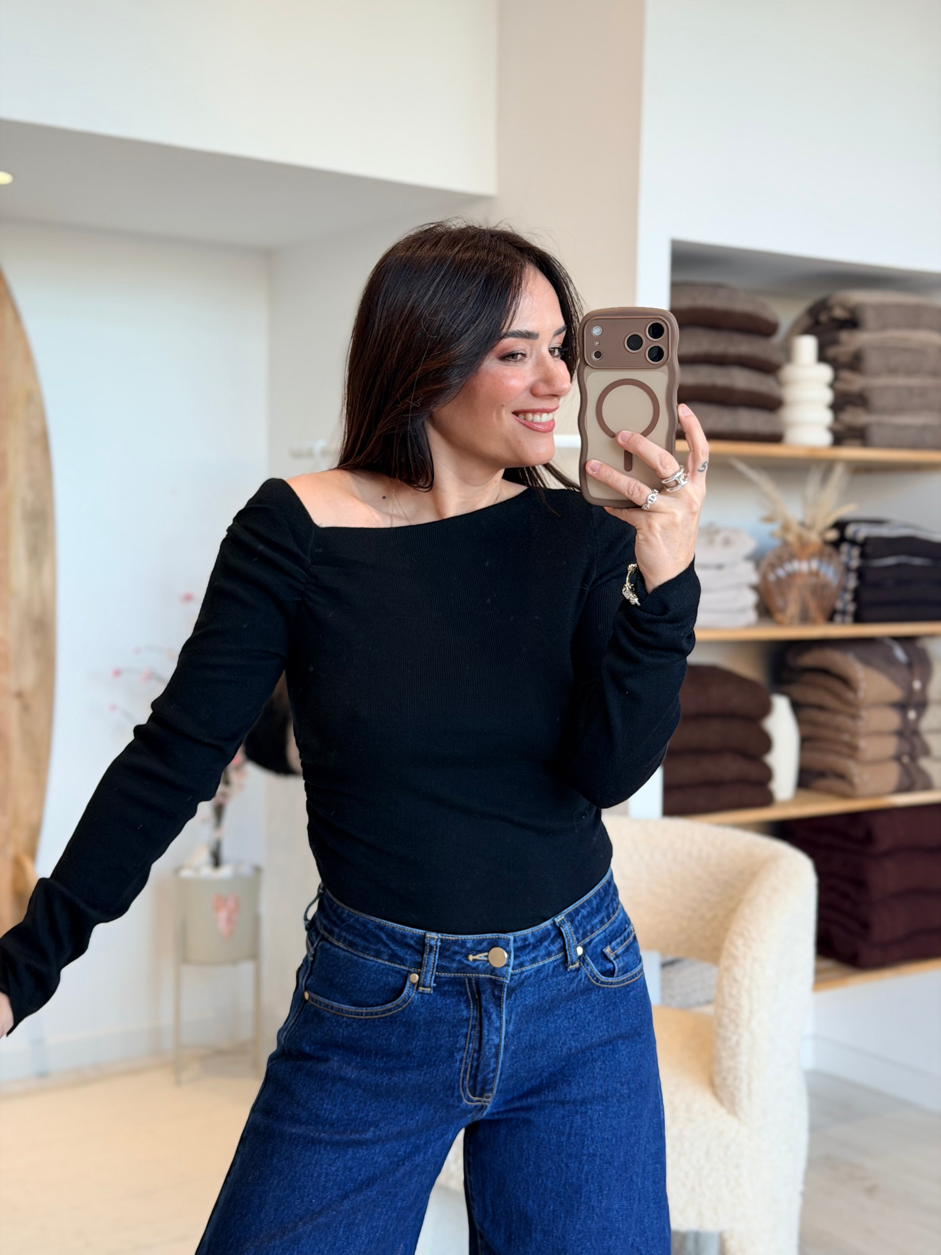 - Épaule légèrement dénudée