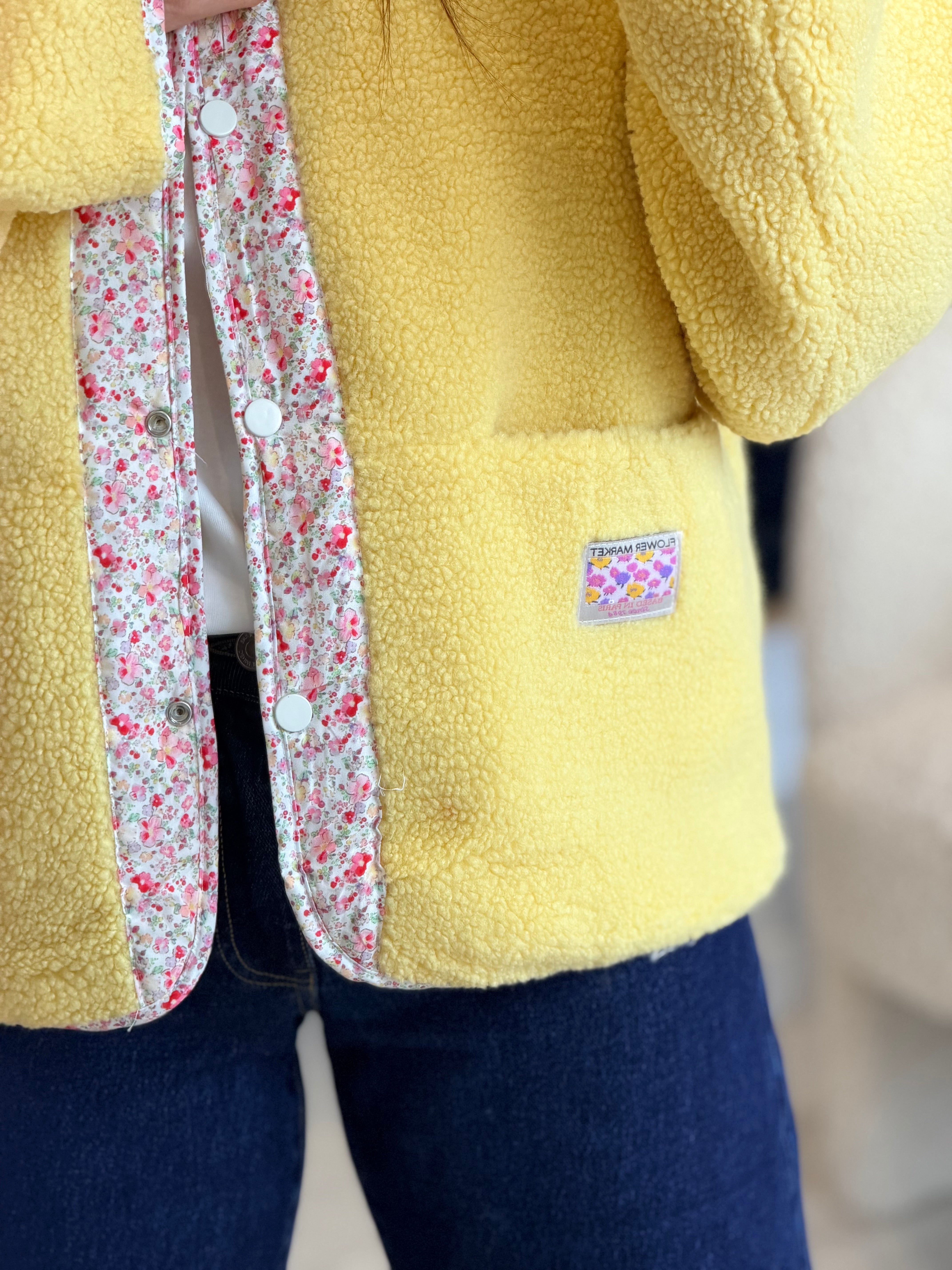 - Etiquette sur la poitrine ou sur la poche "Flower market"