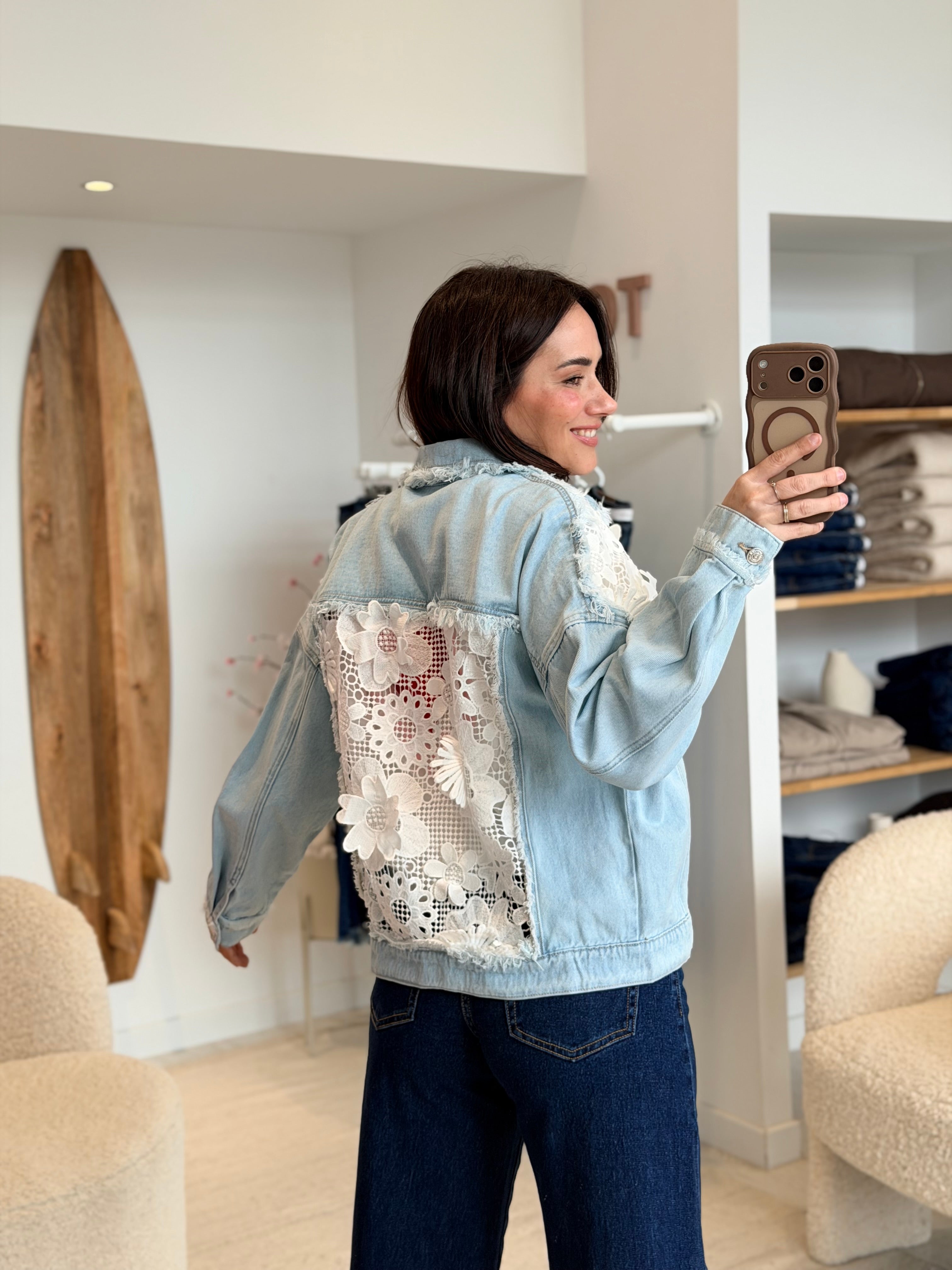 - Couleurs : Denim bleu clair et blanc
