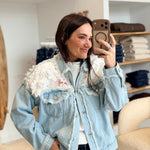 - Finitions effilochées (col, poches, empiècements et poignets)