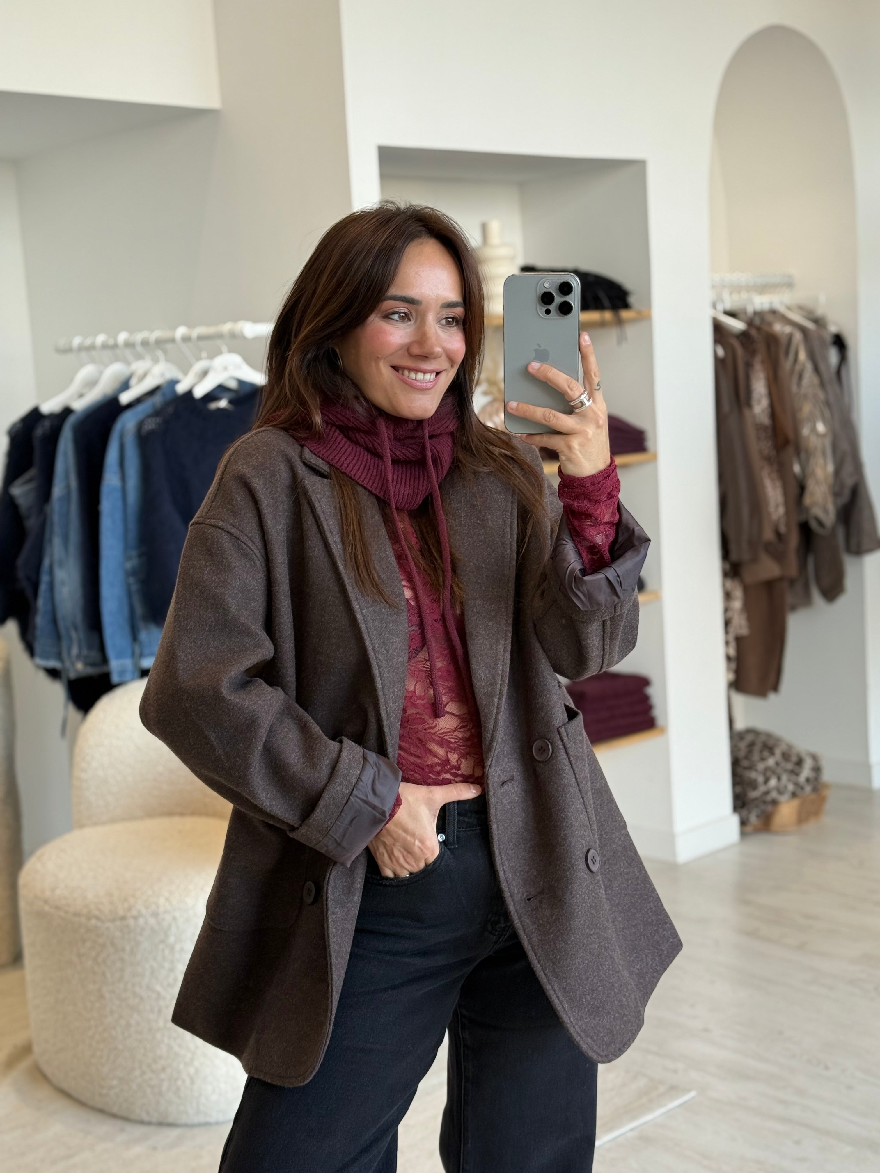 - Couleurs : Écru, Gris et Bordeaux