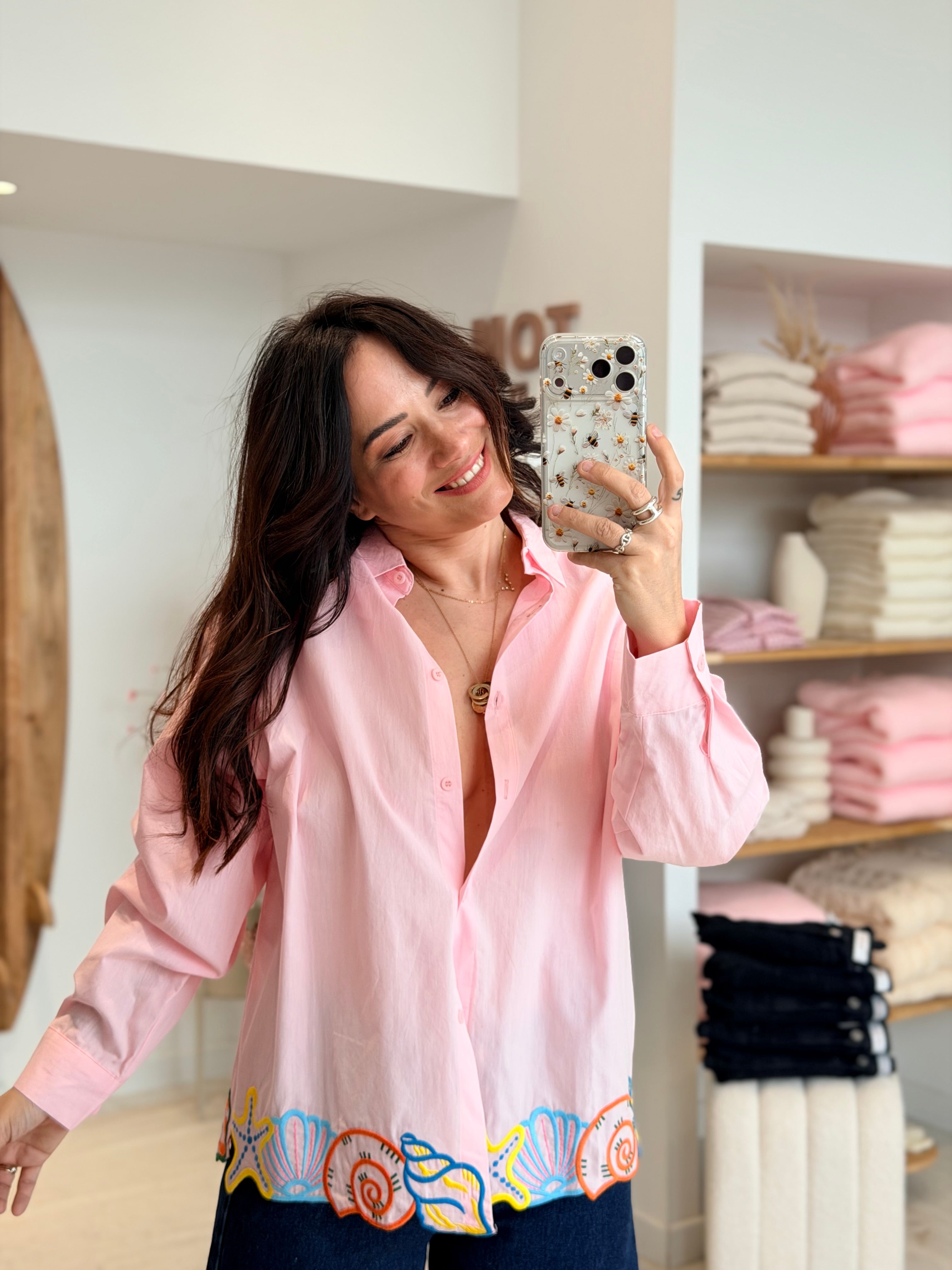 - Broderie ajourée festonnée en coquillage sur tout le bas