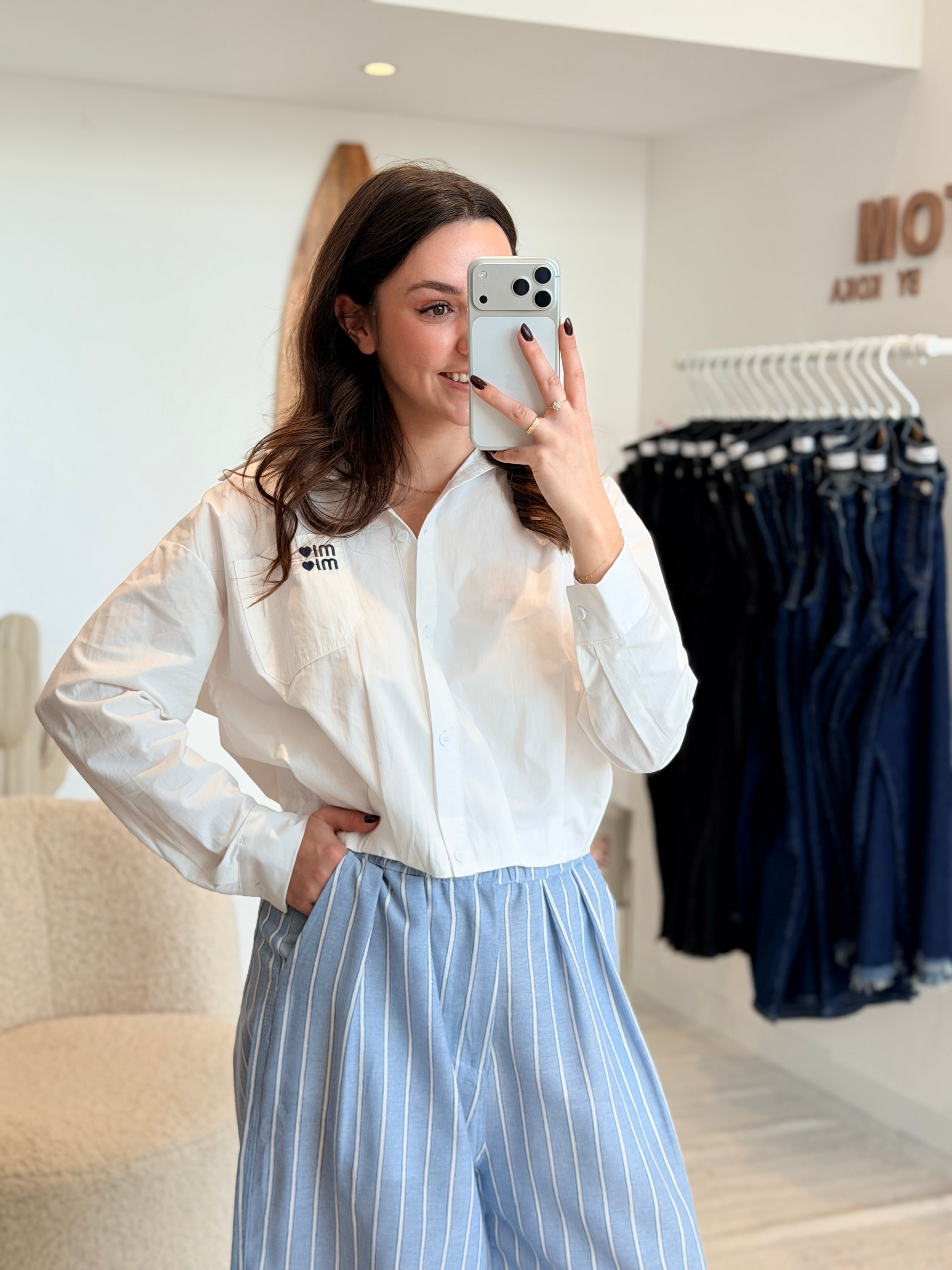 - Poche plaquée sur la poitrine + Broderie "MI <3 MI <3"