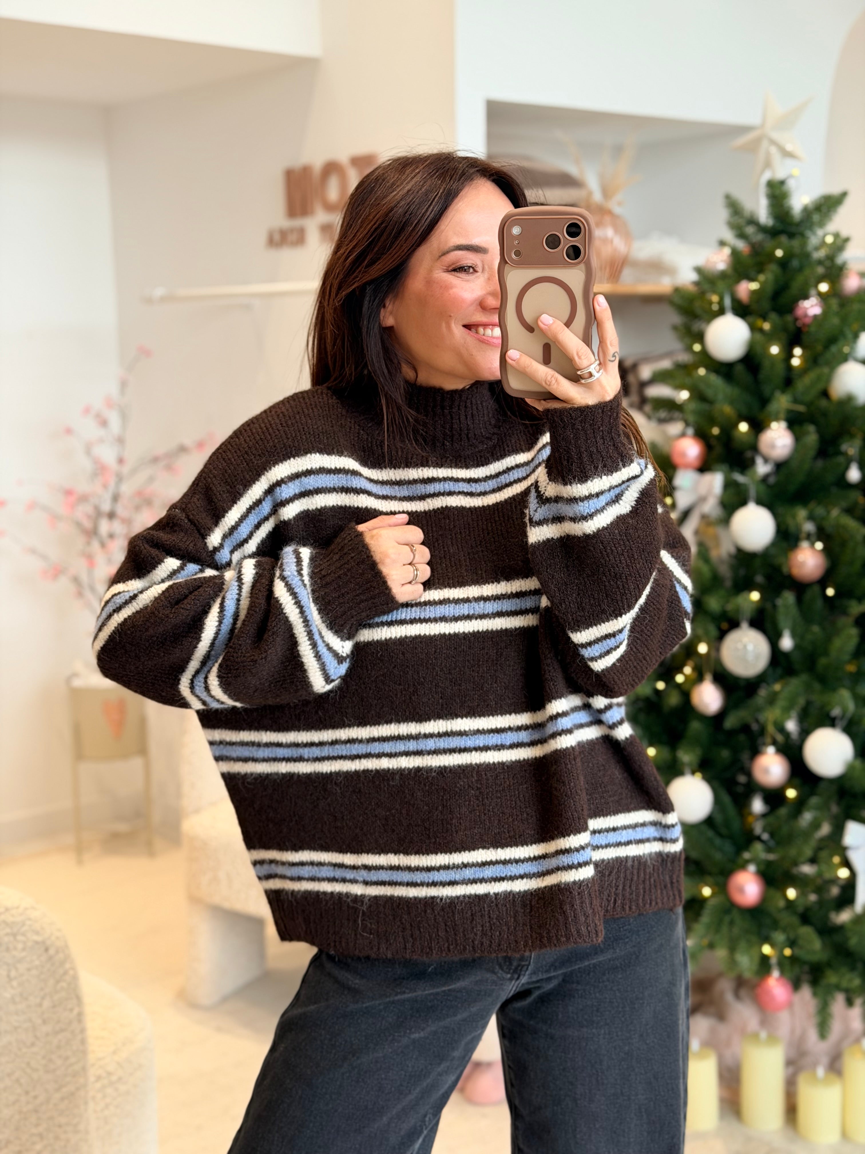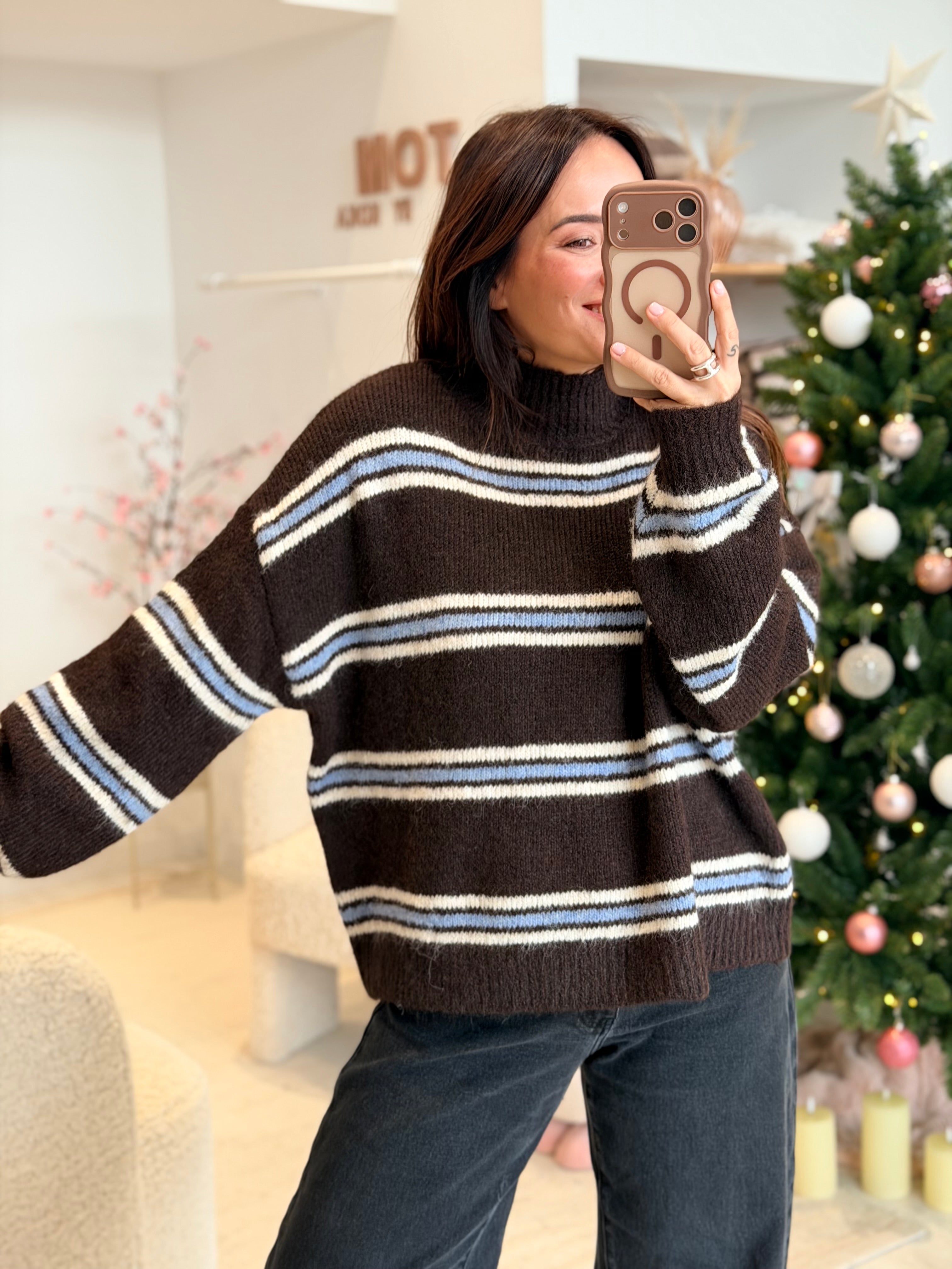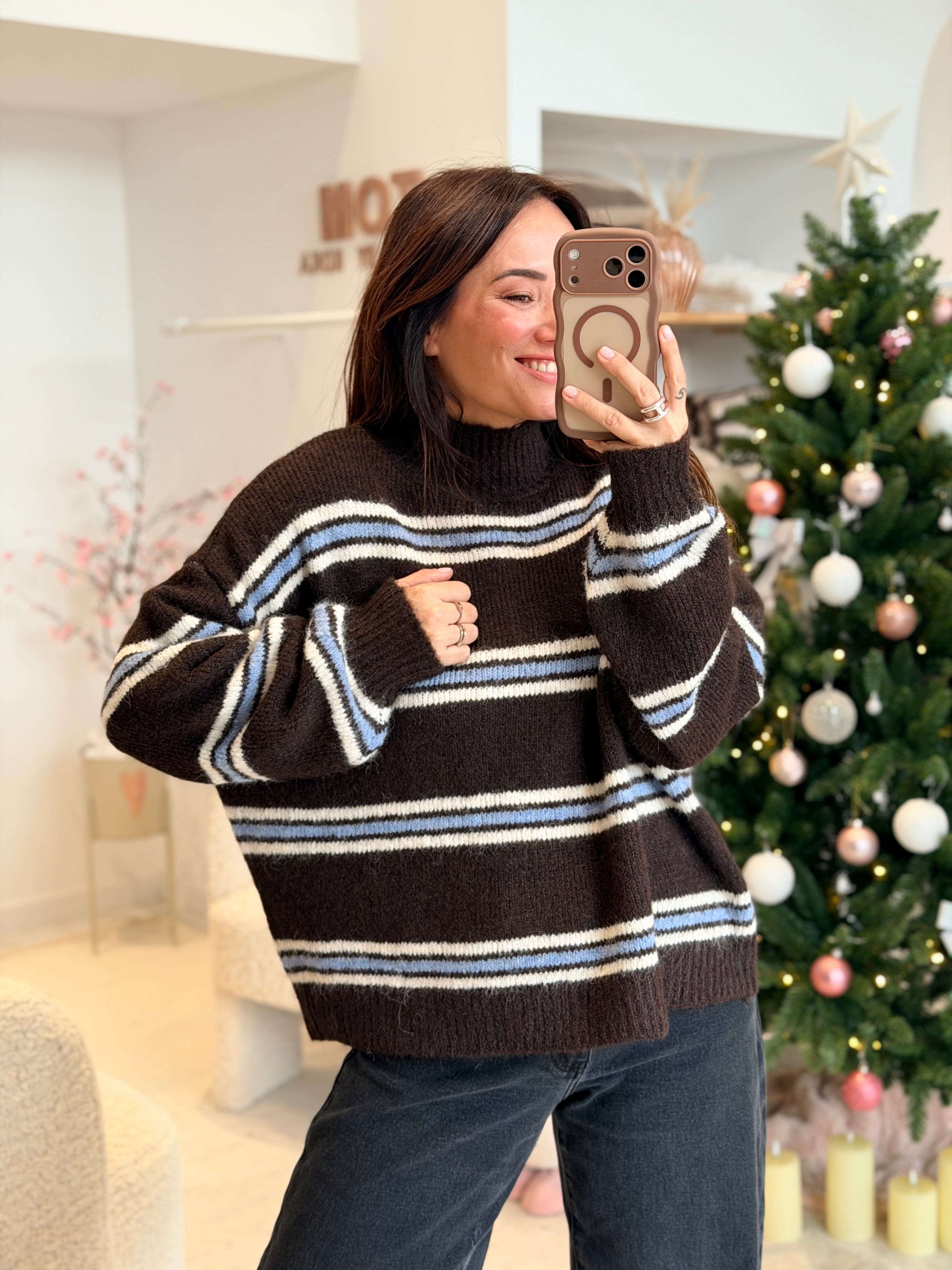 - Couleur : Marron, bleu ciel et blanc