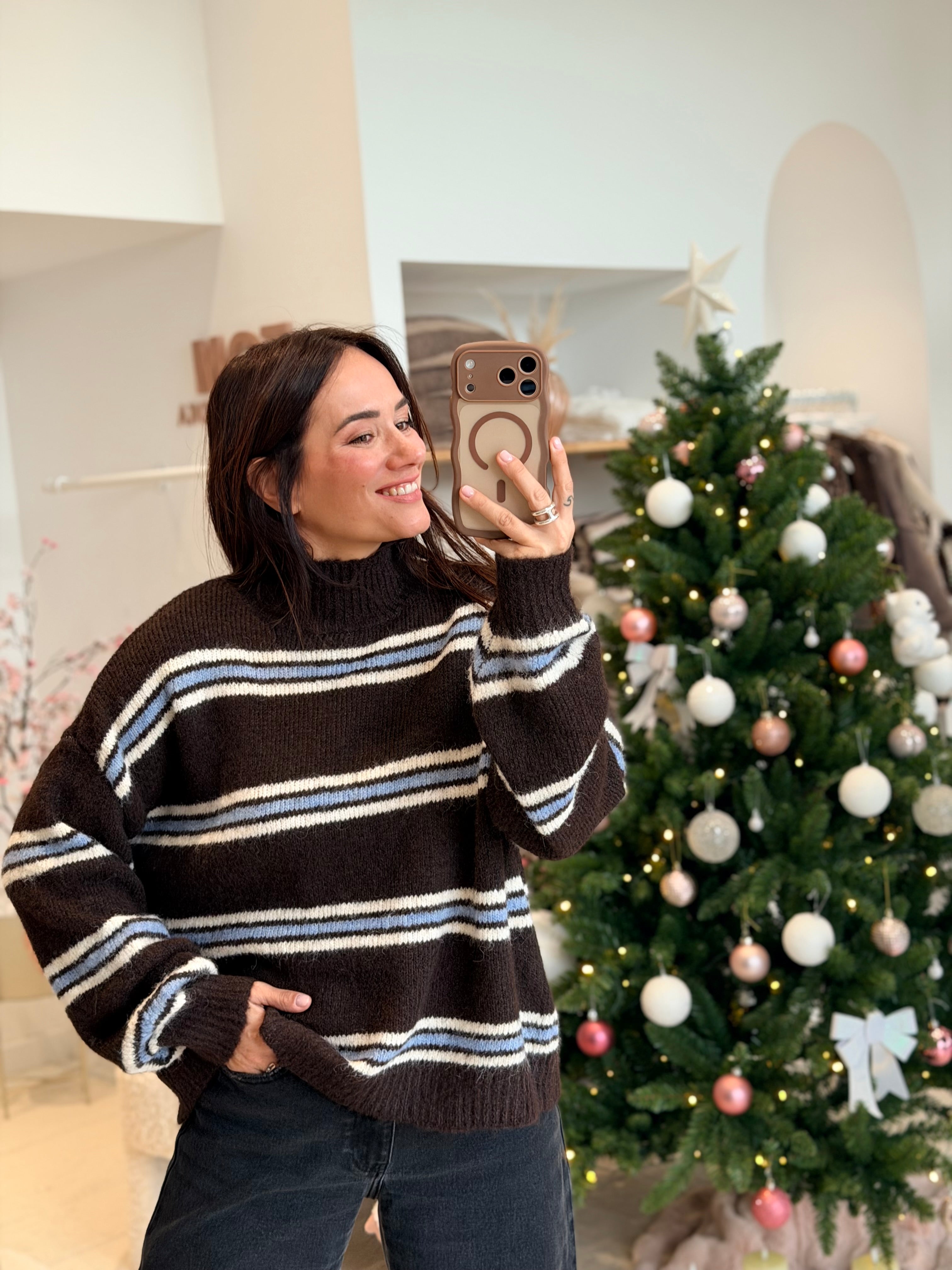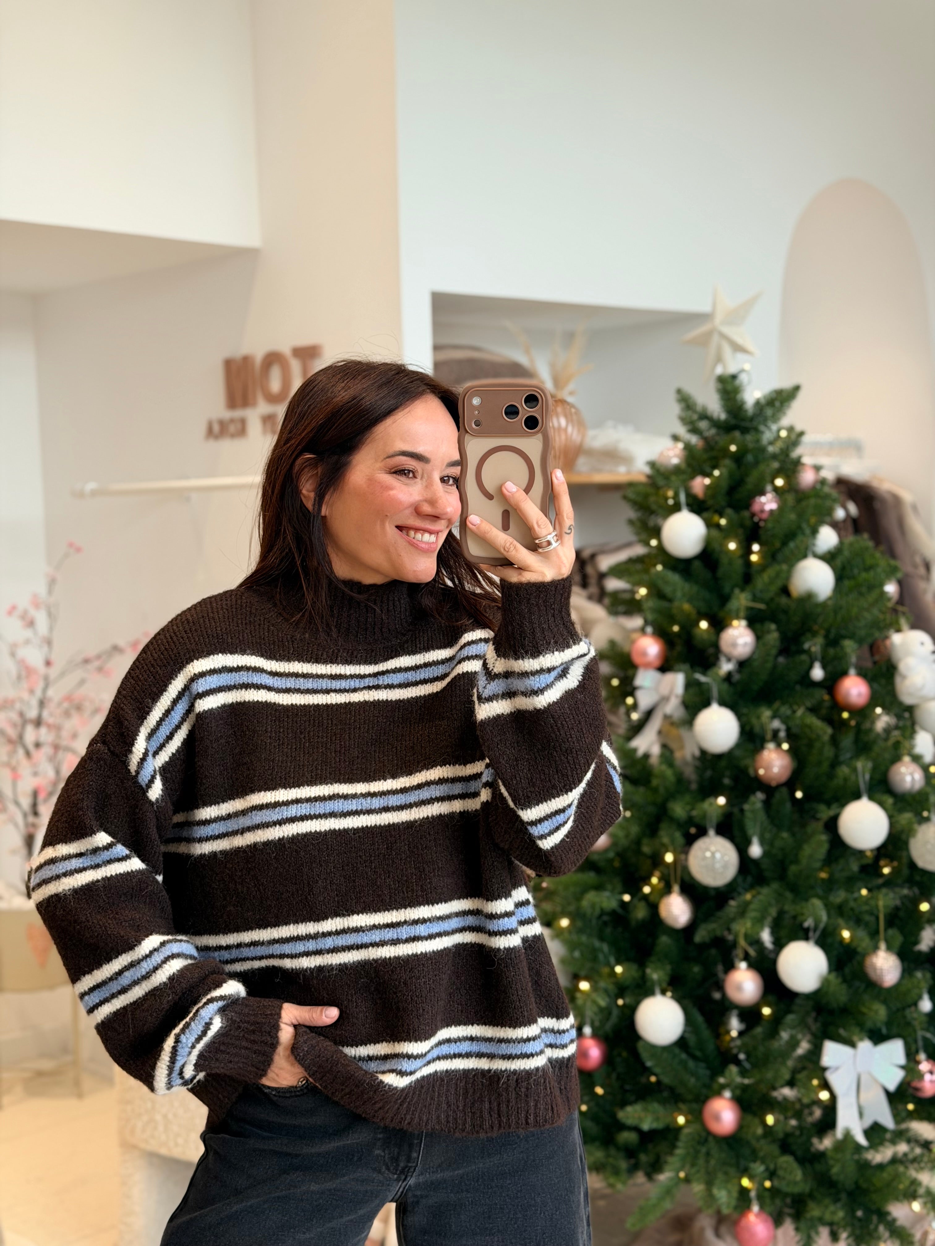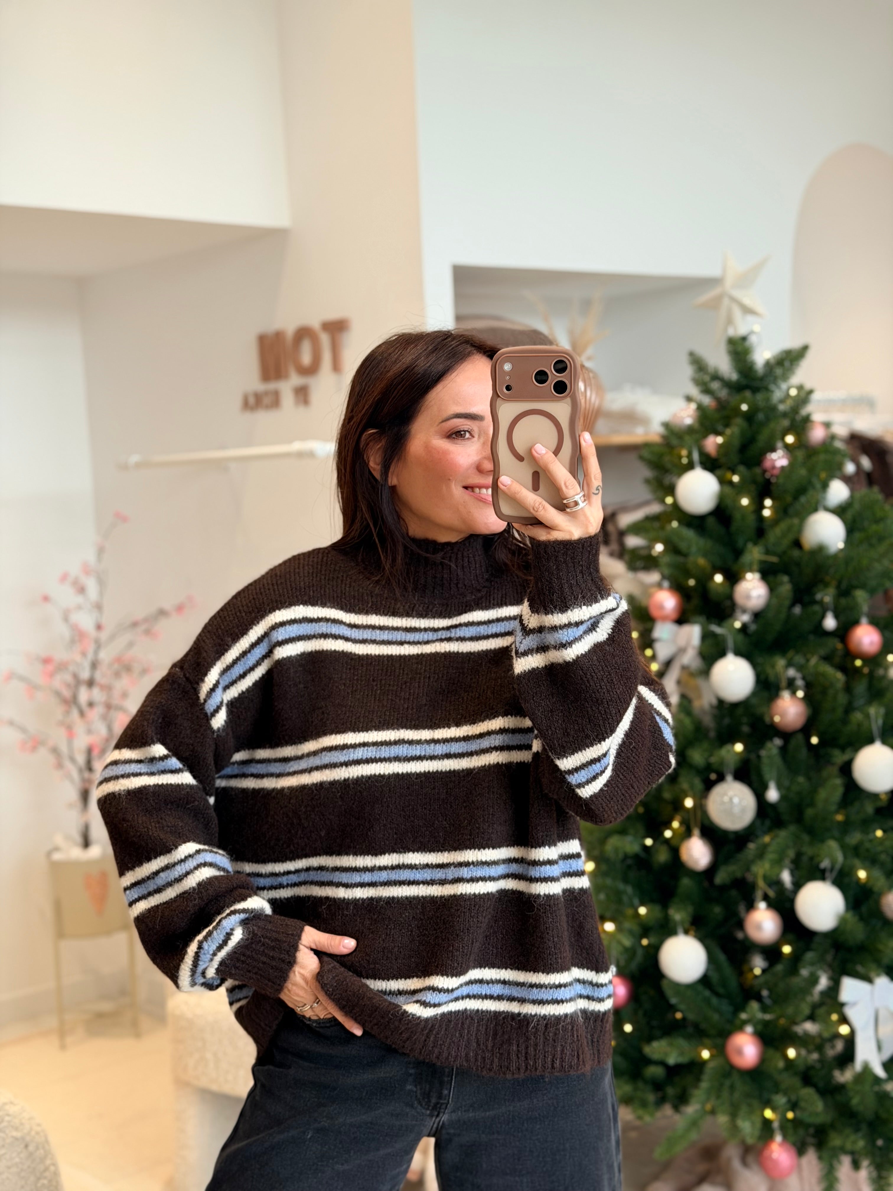 - Couleur : Marron, bleu ciel et blanc