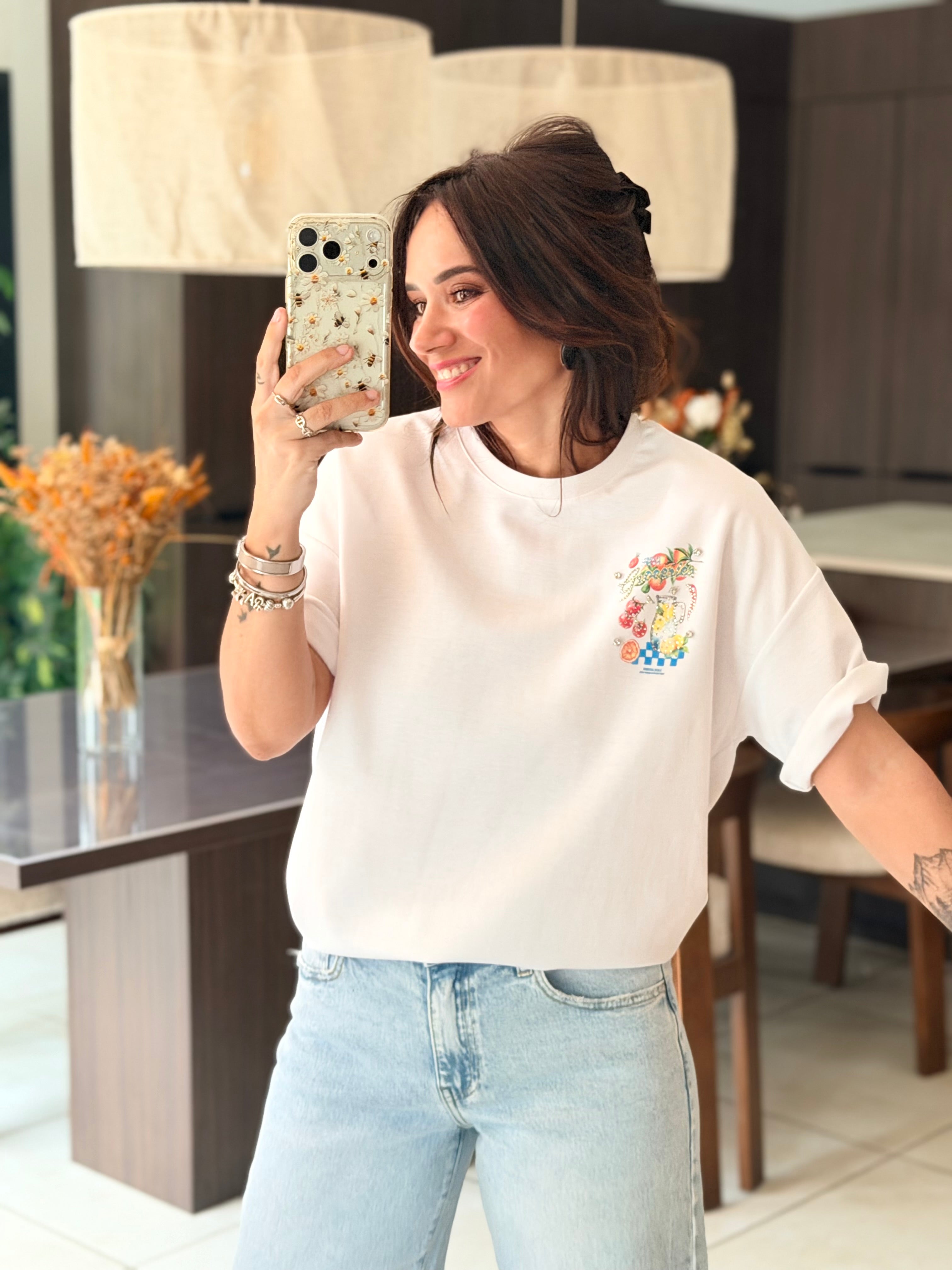 - Motif effet dolce vita, fruits, limonade + détails en strass